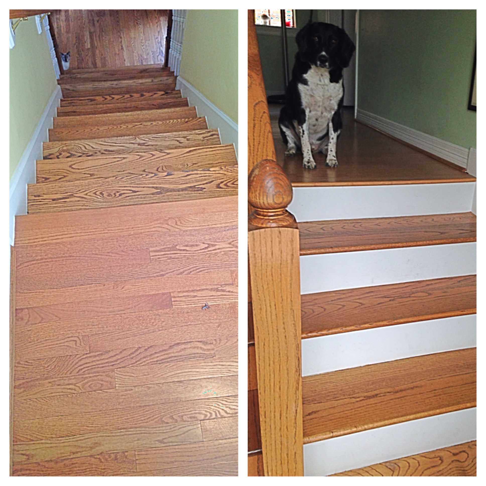 The first thing that comes to mind are my floors. At first glance, it’s not so bad. Wooden floors look fantastically clean; until you step on them with bare feet. Nothing says “dirty” like beginning the day in white socks and ending with something that resembles charcoal gray. It’s that grit; the dirt trapped in the soles of our scientifically designed shoes. We drag that stuff throughout the house. There is so much of it, a daily vacuum isn’t satisfactory. And yes, i confess. We have animals. Hair is an issue. Not to mention the little “gifts” our furry family members love to present. Take a close look at the photo on the left. At the bottom of the stairs, our kitten. At the top of the stairs, the head of a lizard.