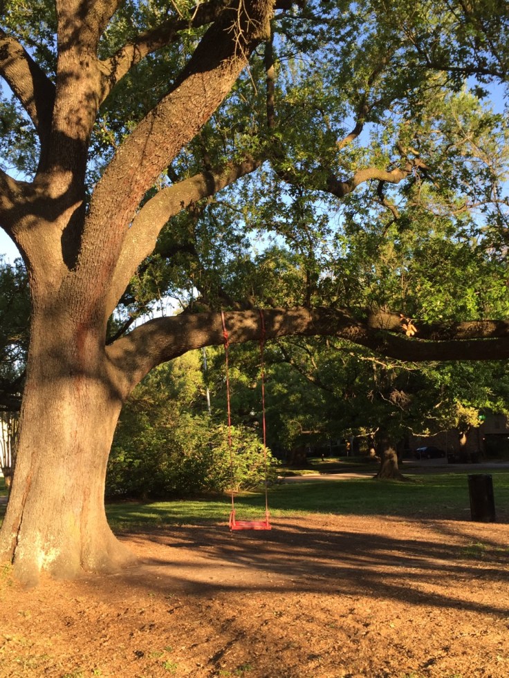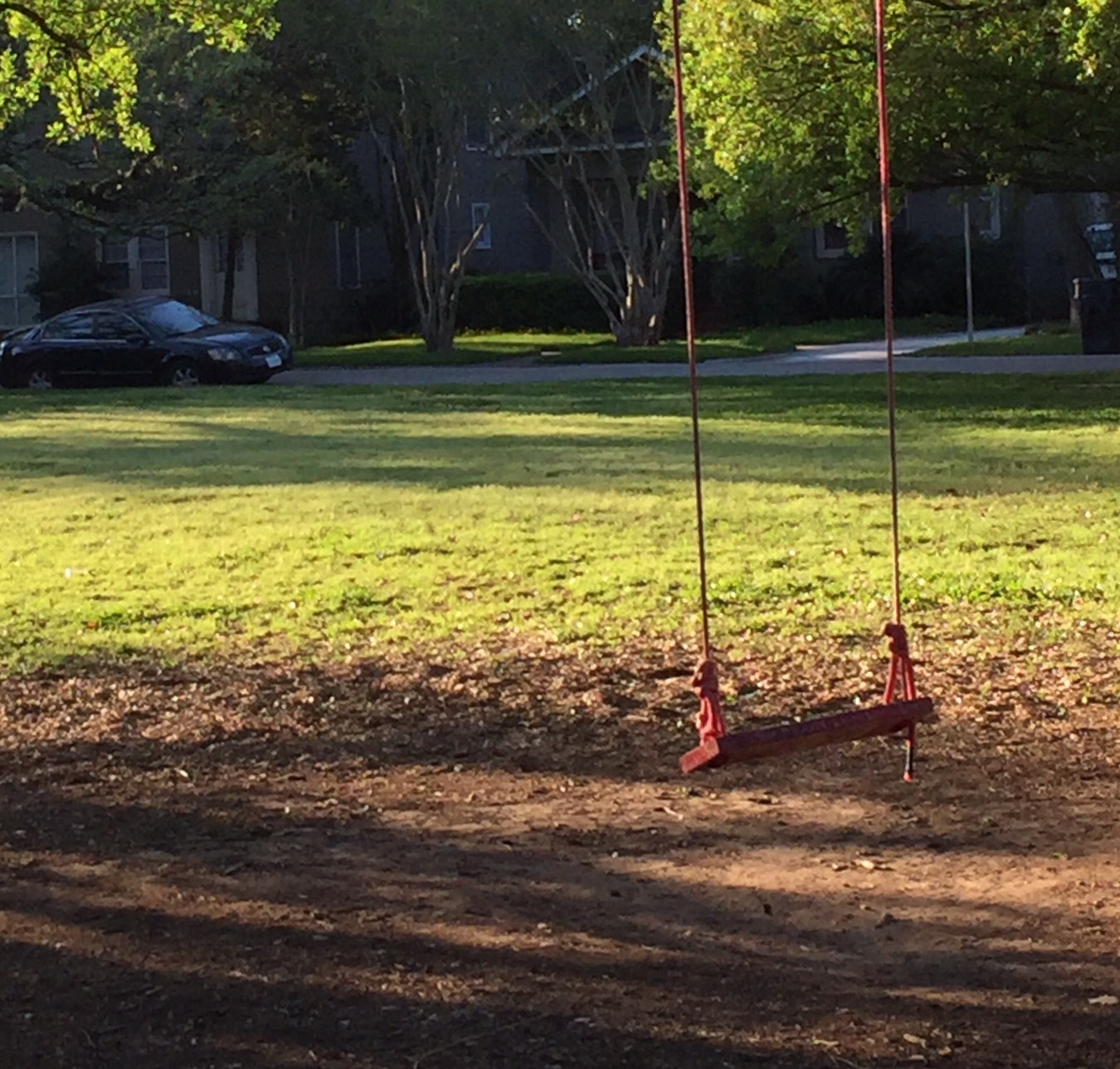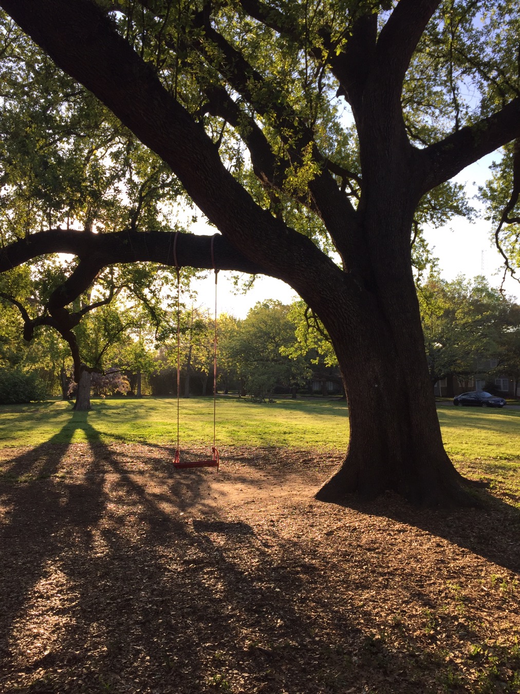 From the back side of the swing, the mood is very different. The swing looks as if it’s been overpowered by the tree’s shadows, yet hopeful that the sun will rise and rescue it from the dark.