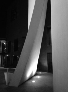 Imaging the curtain of the tabernacle being torn open. Or, it could be pulling open the entrance to a tent, welcoming you, inside. Not sure what the architect had in mind.